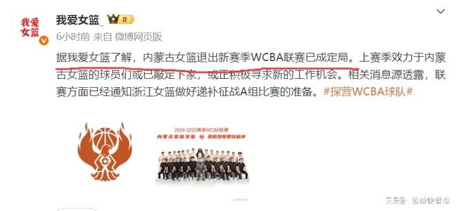中国女篮的天塌了,根据知情人士透露,作为曾经女篮联赛霸主之一,内蒙古女篮已经基本确定退出WCBA联赛了。三年前,这支球队还是女篮联赛的冠军球队,一时风光无两。可为何短短三年的时间,这支曾经的联赛霸主球队,却到了退出联赛的地步。据悉,WCBA联赛方面已经正式通知浙江女篮,他们将替补内蒙古女篮,进入到新赛季A级别比赛。而内蒙古退出WCBA联赛后,张茹、李缘、孙梦然以及王丽丽等国手,或许将面临无球可打的尴尬地步。