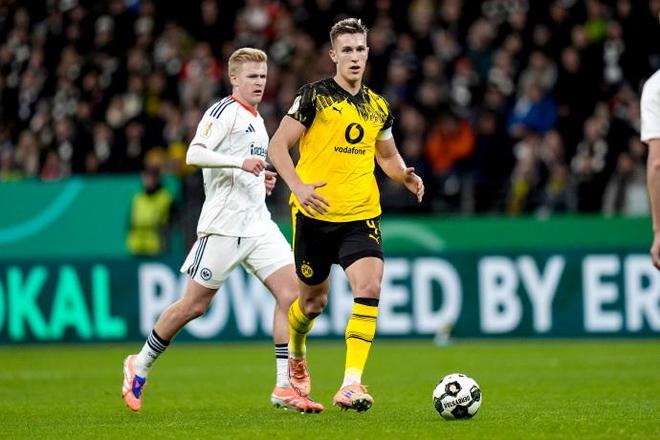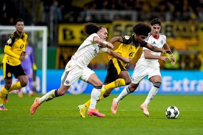 上半场多特始终在对手的高压逼抢下艰难周旋,第5分钟,阿德耶米接斯文松下底传中内切推射打偏,成为多特为数不多的威胁攻势;而法兰克福则持续施压,第39分钟泰特弧顶劲射被科贝尔稳稳没收,第35分钟沙伊比的远射折射出底线,多次考验多特门将的扑救能力。半场结束时,多特控球率虽占优却未能转化有效威胁,1-0的比分折射出客场作战的被动。